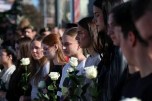 People commemorate the victims on the first anniversary of the fatal November 2024 Novi Sad railway station canopy collapse, which killed 16 people, triggering nationwide accusations of widespread corruption and negligence, in Novi Sad, Serbia, November 1, 2025. REUTERS/Zorana Jevtic