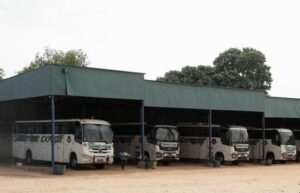Buses in a closed bus station after opposition leader Issa Tchiroma Bakary called for a three-day national lockdown urging supporters to suspend activities and remain at home to show dissent at the re-election of President Paul Biya, in Garoua, Cameroon, November 4, 2025. REUTERS/Desire Danga Essigue