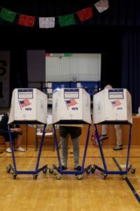 Una persona vota en las elecciones a la alcaldía de Nueva York, en un colegio electoral del distrito de Manhattan de la ciudad de Nueva York, Estados Unidos, el 4 de noviembre de 2025. REUTERS/Jeenah Moon