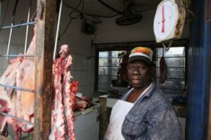 A butcher waits for customers at his shop, after he opened his business following a general election marred by violent demonstrations over the exclusion of two leading opposition candidates, in Dar es Salaam, Tanzania November 4, 2025. REUTERS/Emmanuel Herman