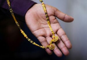 A goldsmith holds a chain inside a jewellery making workshop November 5, 2025 November 5, 2025 A goldsmith holds a chain inside a jewellery making workshop in Mumbai, India, August 14, 2025. REUTERS/Francis Mascarenhas