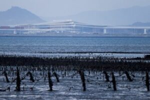FILE PHOTO: A new airport under construction in Xiamen, China as seen from Kinmen, Taiwan October 18, 2025. REUTERS/Ann Wang/File Photo
