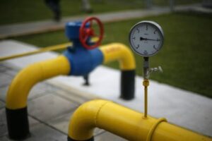 FILE PHOTO: A pressure gauge, pipe and valves are pictured at a boosting compressor station (BCS) on the East Poltava gas field near the village of Kovalivka, in Poltava region, Ukraine, June 27, 2014. REUTERS/Gleb Garanich/File Photo