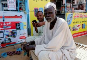 Sheikh Mayor Abdullah Mohamed Khatir sits at the arrival station for displaced people from El Fasher, in Al-Dabbah, Sudan, November 5, 2025. REUTERS/El Tayeb Siddig