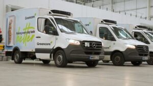 Greencore vehicles are parked at Greencore’s Tamworth Distribution Centre, in Britain, in this undated handout image. Steve Hatton of Electric Egg /Handout via REUTERS