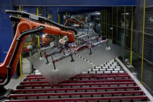 FILE PHOTO: Robots shift solar glass at a production line of Borosil Renewables Ltd., a low-iron textured solar glass manufacturer, in Ankleshwar town in the western state of Gujarat, India, May 18, 2025. REUTERS/Amit Dave/File Photo