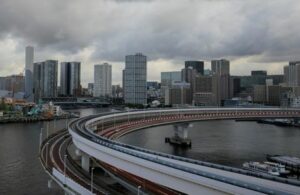A view of the Tokyo skyline is seen through the window of a special bus transporting journalists to the media hotel during the Tokyo 2020 Olympic Games in Tokyo, Japan, August 2, 2021. REUTERS/Amr Abdallah Dalsh