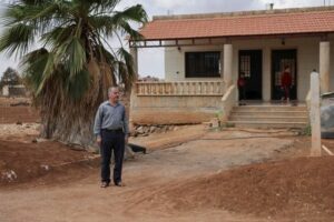Mustafa al-Umayri, a lawyer and spokesperson for Sweida’s displaced Bedouin tribe members, stands in front of a house where he and his family took shelter in the Daraa countryside, Syria, September 25, 2025. REUTERS/Khalil Ashawi