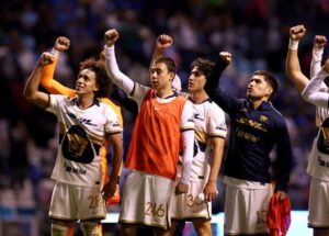 Jugadores de Pumas UNAM celebran con su afición tras derrotar
