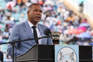 Newly elected president of Botswana, Duma Boko speaks during his inauguration ceremony in Gaborone, Botswana November 8, 2024 REUTERS/Thalefang Charles