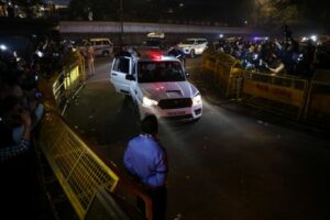 Members of the media work as security personnel accompanying India’s Home Minister Amit Shah arrive at a hospital, following an explosion in the old quarters of Delhi, India, November 10, 2025. REUTERS/Anushree Fadnavis