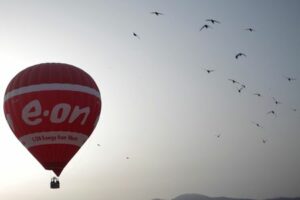 A hot air balloon with the logo of German energy