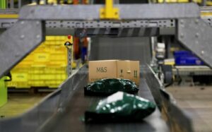 Packages on conveyor belt at a Marks & Spencer (M&S) distribution centre in Castle Donington, Leicestershire, Britain, November 7, 2025. REUTERS/Temilade Adelaja