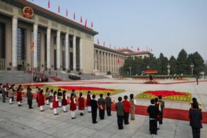 Spain’s King Felipe VI and Chinese President Xi Jinping attend a welcoming ceremony at the Great Hall of the People in Beijing, China November 12, 2025. REUTERS/Maxim Shemetov/Pool
