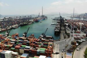 An aerial view shows containers and ships at the Kwai Chung Container Terminal in Hong Kong, China June 7, 2021. REUTERS/Aleksander Solum