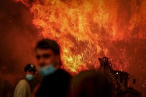 People look on as a wildfire aproaches Trancoso, Portugal, August 13, 2025. Although the record-breaking wildfires that ripped across Spain and Portugal in August have subsided, residents in rural communities in Spain’s northwestern Galicia region are still battling the aftermath. “What happened here is crazy,” said Cristina Santin, a biologist from northwestern Spain who studies fire impacts. “Suddenly you get up one day and your home region is burning on a scale that is completely unprecedented.” REUTERS/Pedro Nunes SEARCH “IBERIA WILDFIRES AFTERMATH” FOR THIS STORY. SEARCH “WIDER IMAGE” FOR ALL STORIES. TPX IMAGES OF THE DAY