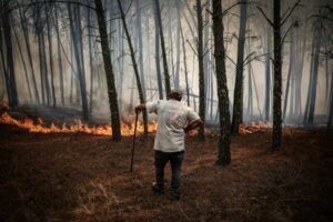 A man rests with his agricultural tool in an area where a wildfire was brought under control in Trancoso, Portugal, August 13, 2025. Although the record-breaking wildfires that ripped across Spain and Portugal in August have subsided, residents in rural communities in Spain’s northwestern Galicia region are still battling the aftermath. “What happened here is crazy,” said Cristina Santin, a biologist from northwestern Spain who studies fire impacts. “Suddenly you get up one day and your home region is burning on a scale that is completely unprecedented.” REUTERS/Pedro Nunes SEARCH “IBERIA WILDFIRES AFTERMATH” FOR THIS STORY. SEARCH “WIDER IMAGE” FOR ALL STORIES.