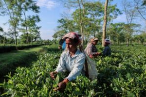 FILE PHOTO: A worker plucks fresh tea leaves at the Chota Tingrai estate in Tinsukia, Assam, India, July 23, 2025. REUTERS/Sahiba Chawdhary/File Photo