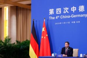 German Vice Chancellor and Finance Minister Lars Klingbeil looks on during the delivery of statements after a high-level meeting at Diaoyutai State Guesthouse in Beijing, China, November 17, 2025. REUTERS/Maxim Shemetov/Pool