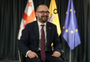 Grigol Gegelia, a member of Lelo opposition party, gives an interview in Tbilisi, Georgia, November 13, 2025. REUTERS/Irakli Gedenidze