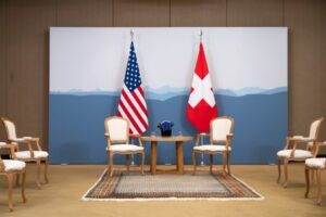 U.S. President Biden arrives in Geneva November 19, 2025 November 19, 2025 The flags of Switzerland and the U.S. in Geneva, Switzerland June 15, 2021. Alessandro della Valle/Pool via REUTERS