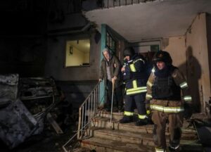 Rescuers evacuate a resident from the apartment building hit by a Russian drone strike, amid Russia’s attack on Ukraine, in Kharkiv, Ukraine November 19, 2025. REUTERS/Vyacheslav Madiyevskyy