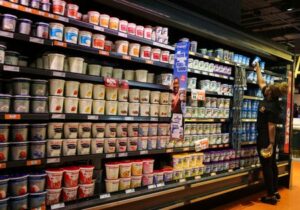 A shopper picks an item at the dairy section as she shops at a Checkers outlet in Sandton, South Africa, September 22, 2025. REUTERS/Siphiwe Sibeko