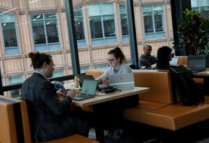 Employees work on laptops in the Moore Kingston Smith office in London, Britain, November 13, 2025. REUTERS/Hannah McKay