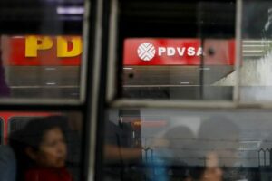 FOTO DE ARCHIVO: Un autobús pasa por delante de una gasolinera con el logotipo de la petrolera estatal venezolana PDVSA, en Caracas, Venezuela, 14 de mayo de 2025. REUTERS/Leonardo Fernández Viloria/Archivo